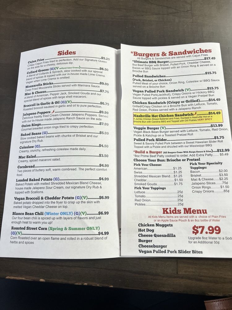 Cajun Fries, Mac Cheese, Broccoli with Garlic Oil, Baked, Beans, Onion Rings, Coleslaw, Mac Salad, Roasted Street CornSummer Spring, Loaded Baked PotatoFall Winter