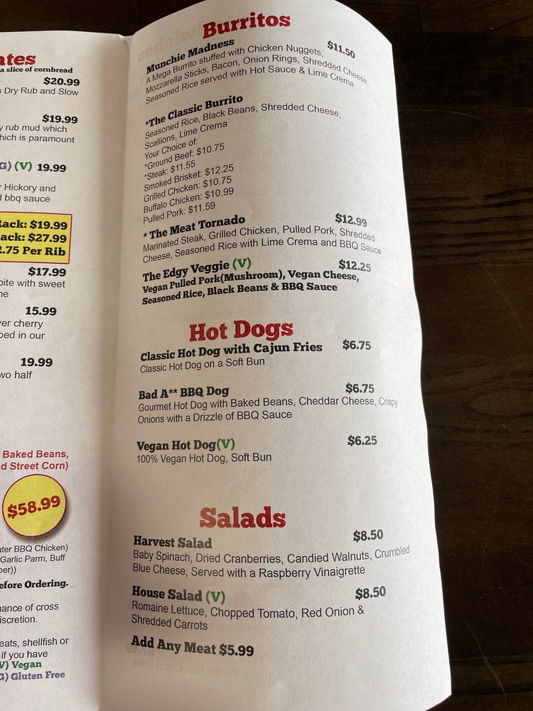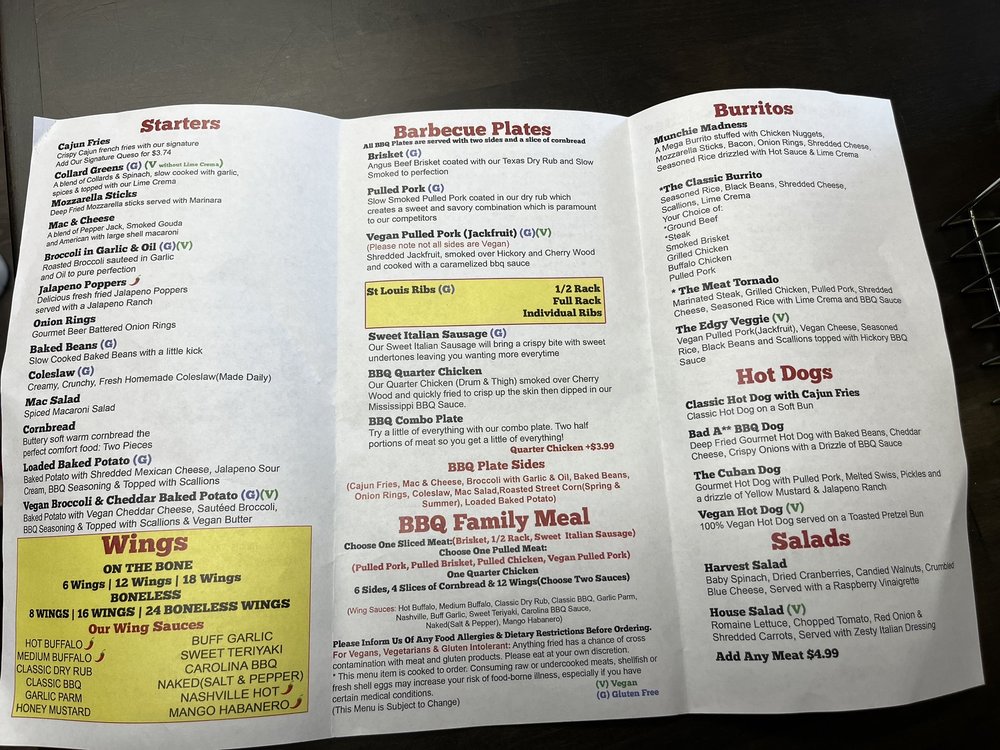 The menu features a variety of options, including vegan and many vegetarian dishes, showcasing their commitment to inclusivity. Whether you're dining in, opting for takeout, or even reserving a table for a night out, Big Belly Que ensures a cozy dining experience. The casual vibe is perfect for families, friends, or a quiet meal alone, enhanced by the inviting atmosphere complete with TV entertainment.